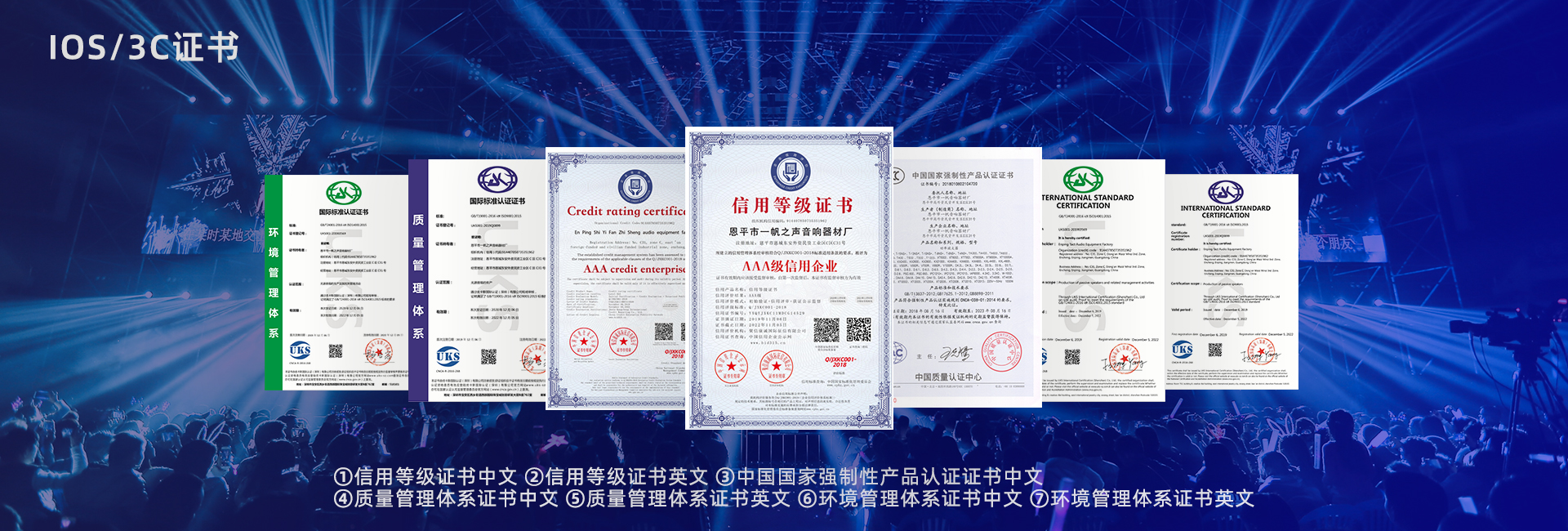 一帆音響已獲得質(zhì)量管理體系證書,環(huán)管理體系證書,AAA信用證書,各種產(chǎn)品檢測報告等不同的證書。可提供投標(biāo)資質(zhì)的資料參與投標(biāo),助力拿下大工程